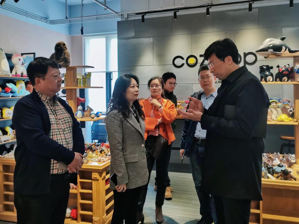 刘志国书记一行参观了山东数娱传媒、天行昆仑集团、上云品和领客文化等优秀园区企业,了解了创意写作、影视动画、三维特效、文化IP、潮流皮玩等文化创意产业产品研发和业态发展情况。