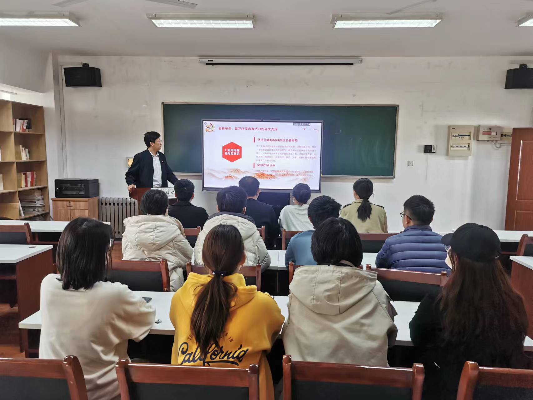 全体专职辅导员,全体学生党员参加活动。党课由党总支书记刘志国主讲。