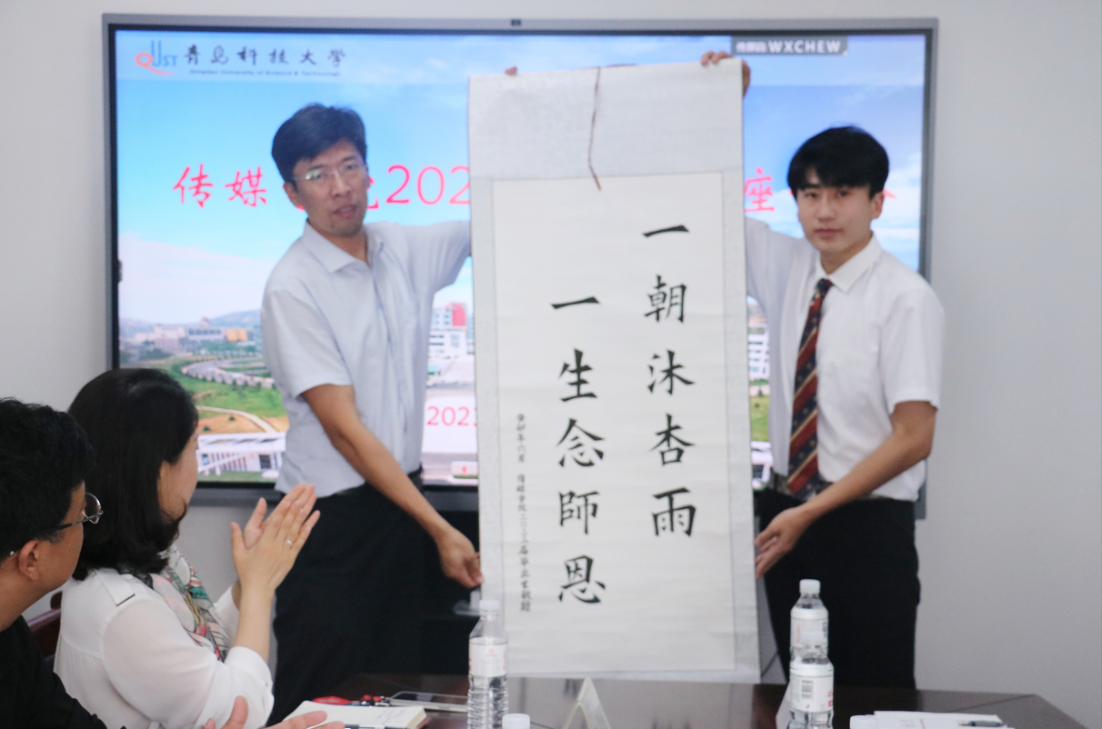 座谈中,毕业生代表结合个人实际情况和感受踊跃发言,针对学生会改革、合作办学、科研交流、求职就业、自动化办公等方面提出意见和建议。学院相关负责人和老师对同学们提出的问题进行解答和记录。本科毕业生代表张忠潮向学院敬赠书法作品“一朝沐杏雨,一生念师恩”,表达对学校和学院的感恩。