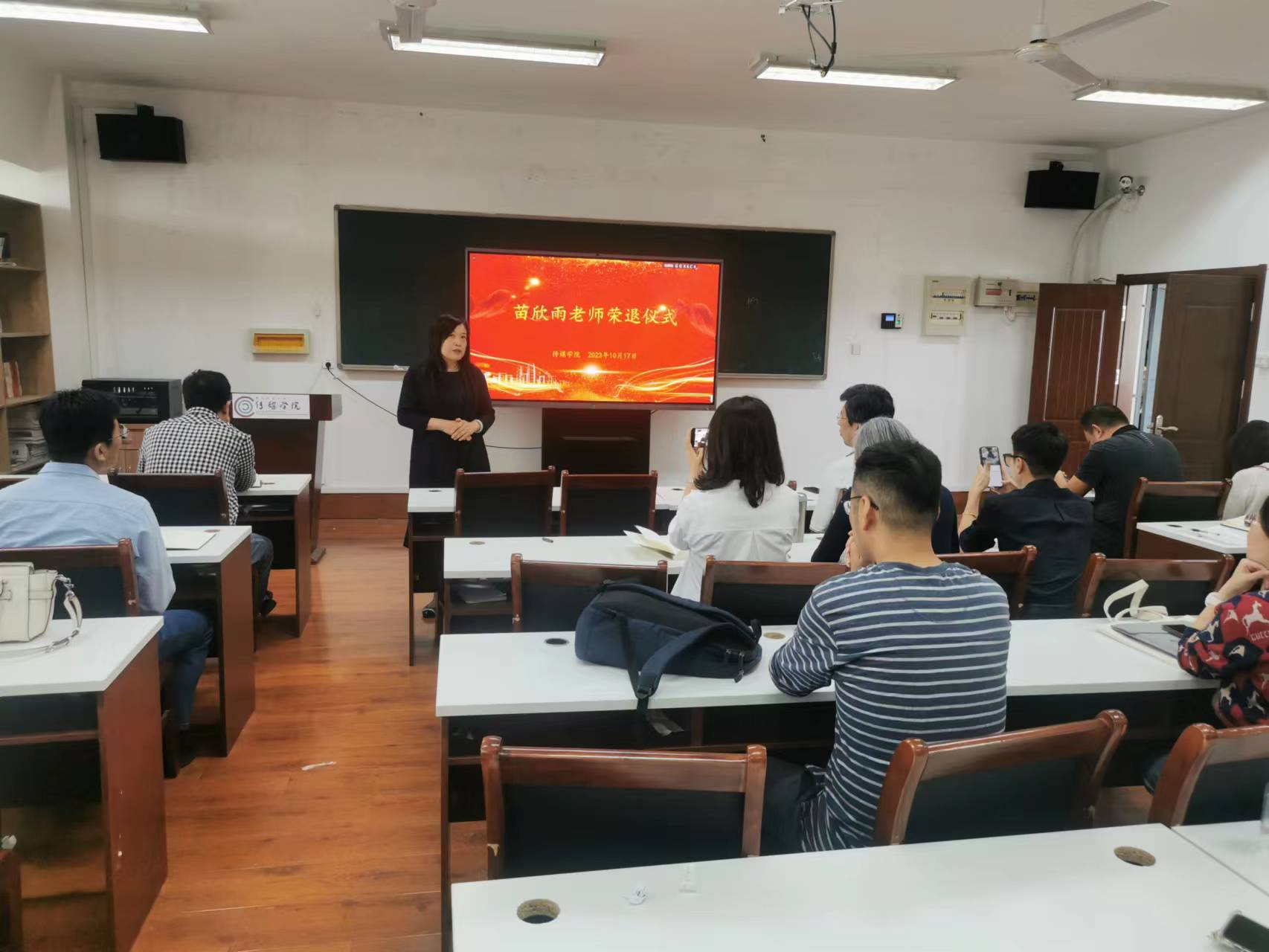 刘志国指出,学院希望通过这样的荣退仪式让教师获得归属感,也体现学院对退休教师的尊重和肯定,也是学院加强师德师风建设、弘扬尊师重教风尚的重要内容,希望苗老师离岗不离心,能够继续关心和关注学院的发展,开启健康、丰富的退休生活。
