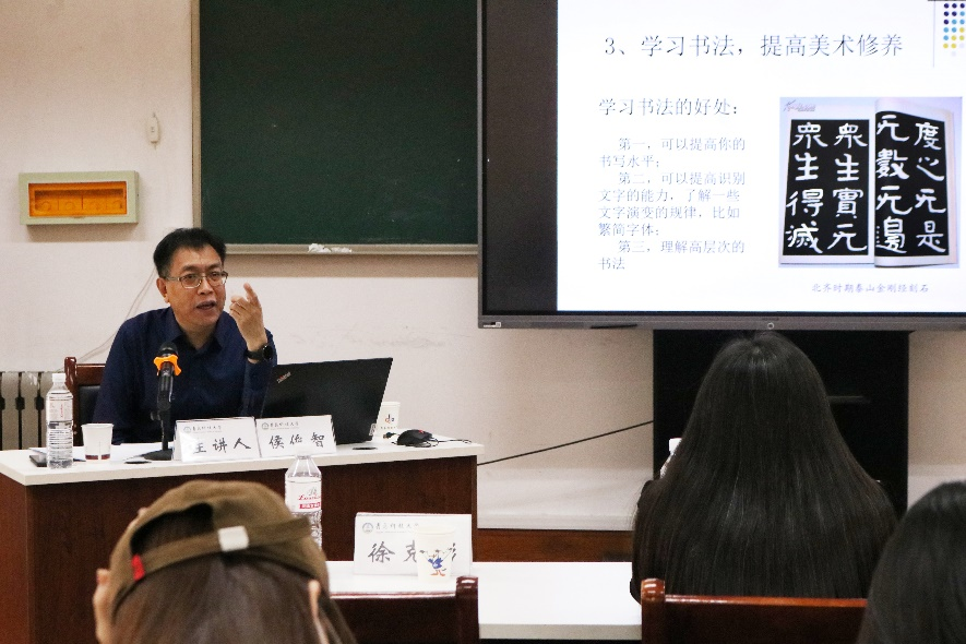 310会议室举办,学院党总支书记刘志国,教师代表邢崇、宋守山、蔡丽娟、单娟、徐克彬出席讲座,近百名学生代表参加讲座。