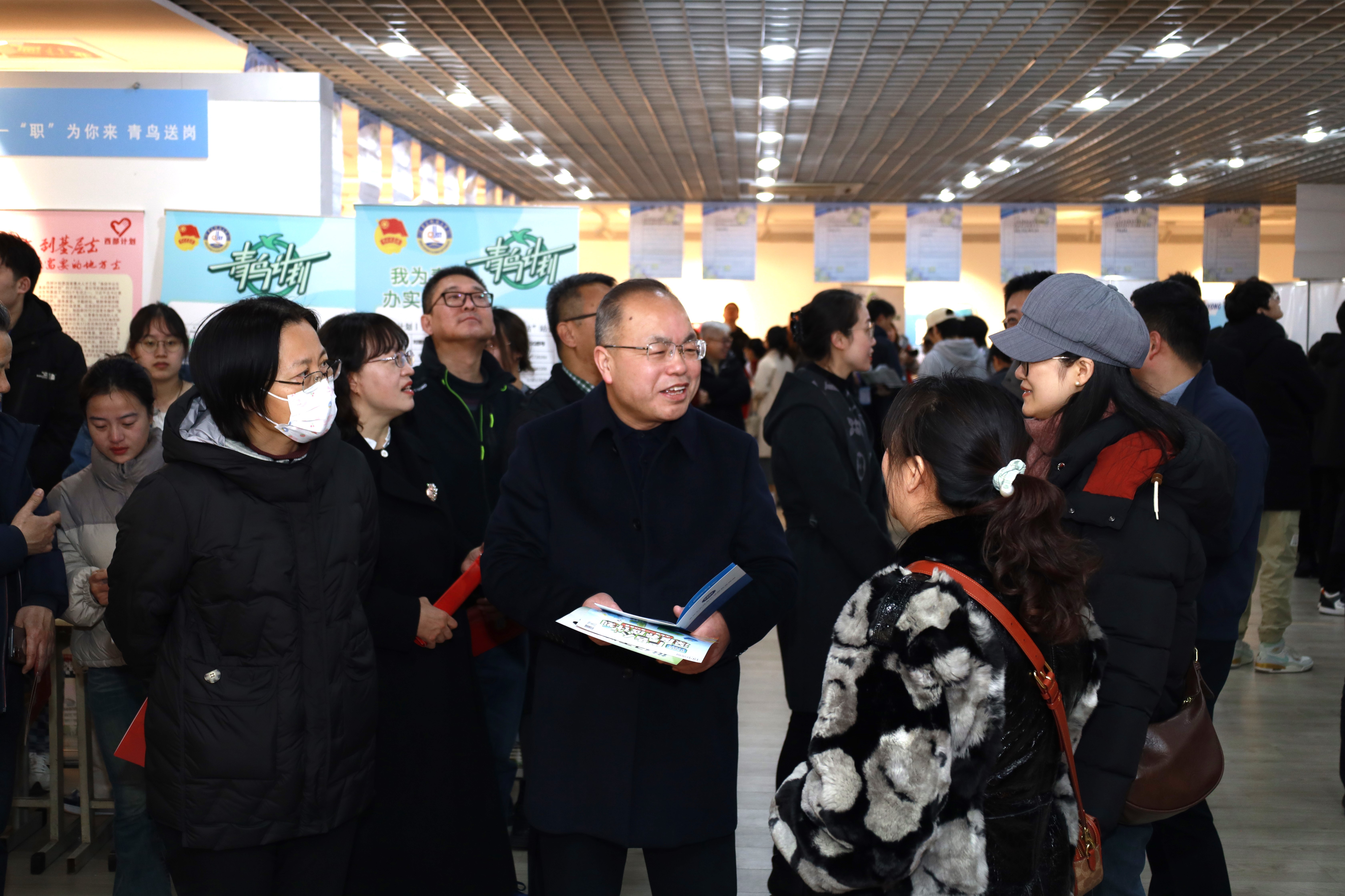 、艺术学院、外国语学院在崂山校区美术馆举办“传”递未来·“艺”起就业·“语”你同行2024年春季校园招聘会。学校党委常委、副校长丁林亲临招聘会现场,与用人单位及师生亲切交流,并听取企业对学校人才培养的需求与建议。