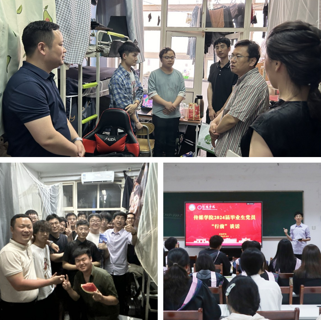 院长张洪坤、副院长石晨旭、党委副书记兼副院长刘海波及毕业生辅导员深入毕业生宿舍,开展走访慰问活动,深入了解毕业生离校情况和就业状况,为即将踏上新征程的毕业生们送上定制大角牛钥匙扣、专属水杯等毕业纪念文创产品,以及可口的西瓜,表达殷切希望和美好祝福。