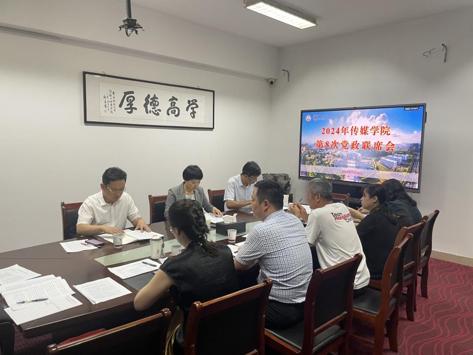 于315会议室召开2024年第8次党政联席会议,学校党委常委、统战部部长秦姣列席指导。会议由8x8x