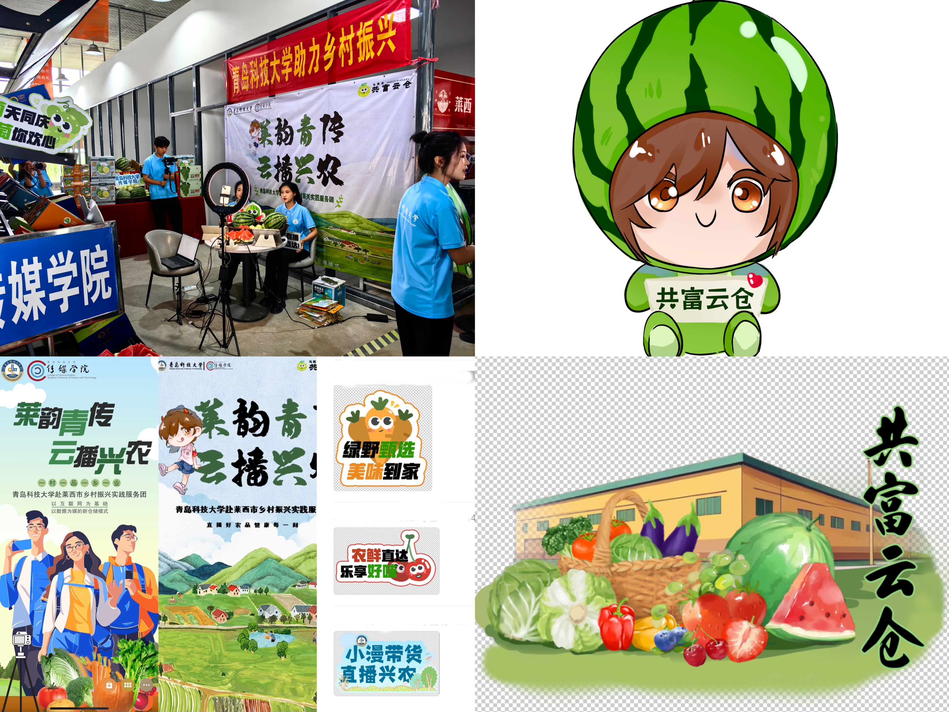 青岛科技大学赴莱西市“莱韵青传·云播兴农”乡村振兴实践服务团由13名队员组成,涵盖编辑出版、广告、动画等专业。实践团立足学院动画专业(国家一流专业)优势,聚焦莱西马连庄的农产品特色和市场需求,充分发挥专业特色并顺应当前数字化营销的趋势,以直播助农及创意设计的方式助力乡村振兴。实践现场,团队对麒麟瓜和马连庄甜瓜进行直播宣传推介,并丰富IP形象设计,创新设计“小漫姐姐”与瓜果融合的卡通形象,量身设计云仓形象与瓜果结合的专属特色标签,以实际行动提升产品辨识度,助力构建莱西农产品品牌新形象。