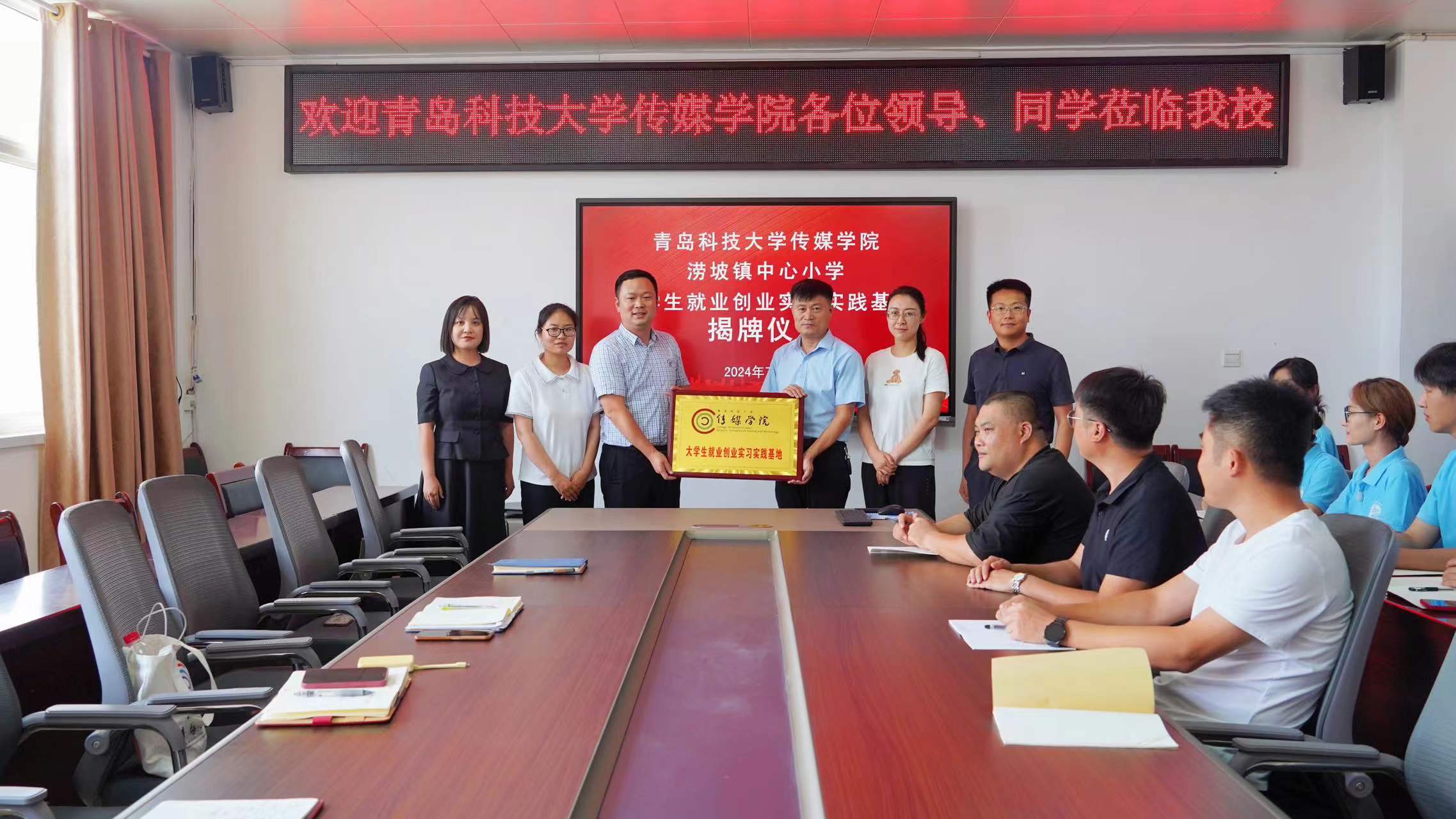 “大学生就业创业实习实践基地”于莒南县涝坡镇中心小学正式揭牌成立。8x8x