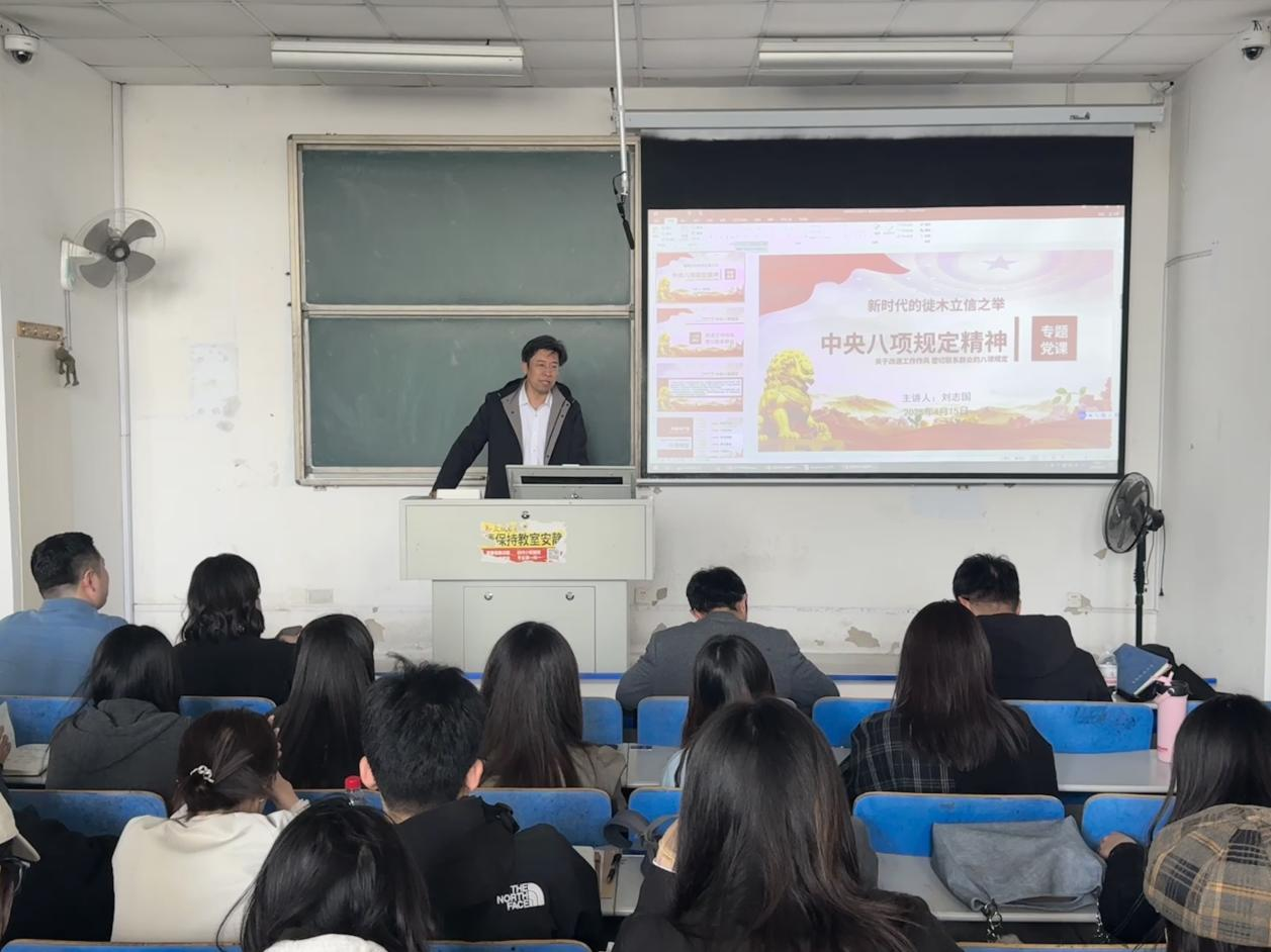 党委书记刘志国以“新时代的徙木立信之举——中央八项规定精神”为题,为学院师生党员讲授专题党课。