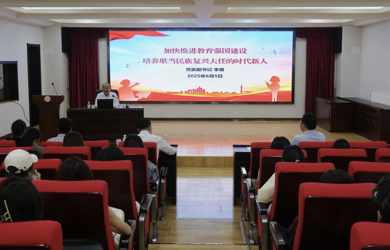 6月5日下午,学校党委副书记李勇以《加快推进教育强国建设,培养堪当民族复兴大任的时代新人》为题,在马克思学院学术报告厅为8x8x