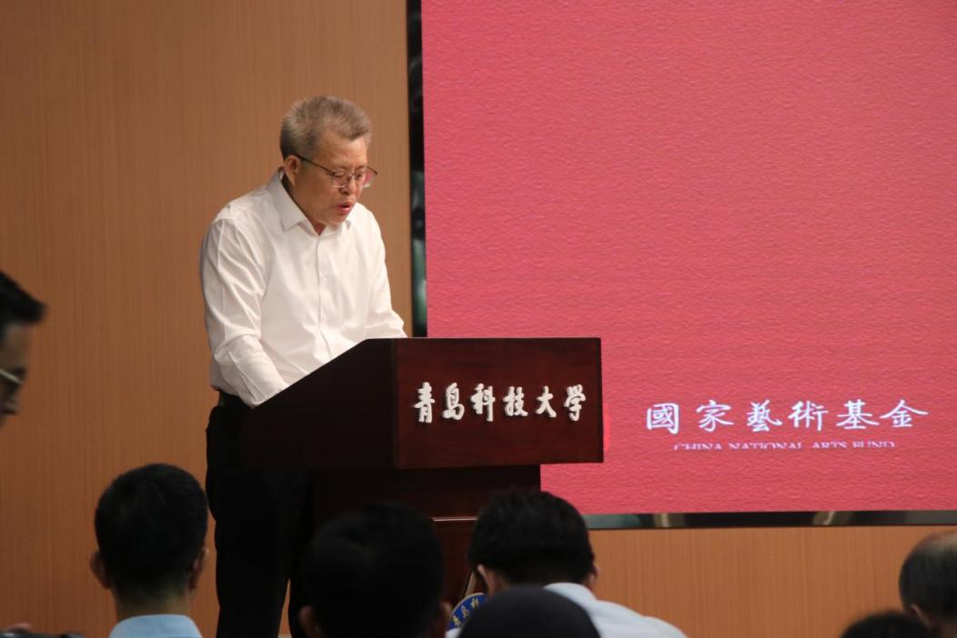 杨天梅在致辞中代表学校对全体学员表示欢迎,并回顾了学校近年来在艺术教育领域取得的丰硕成果,包括国家级一流专业建设、重大艺术创作项目的突破等,感谢国家艺术基金对青岛科技大学艺术学科建设的资助与支持,感谢各位专家学者长期的指导和支持。他表示,学校将进一步重视和支持国家艺术基金的各项工作,对参训学员提出殷切期望,希望大家珍惜这次与顶尖专家面对面学习的机会,以艺术创作为时代立传、为人民抒怀。