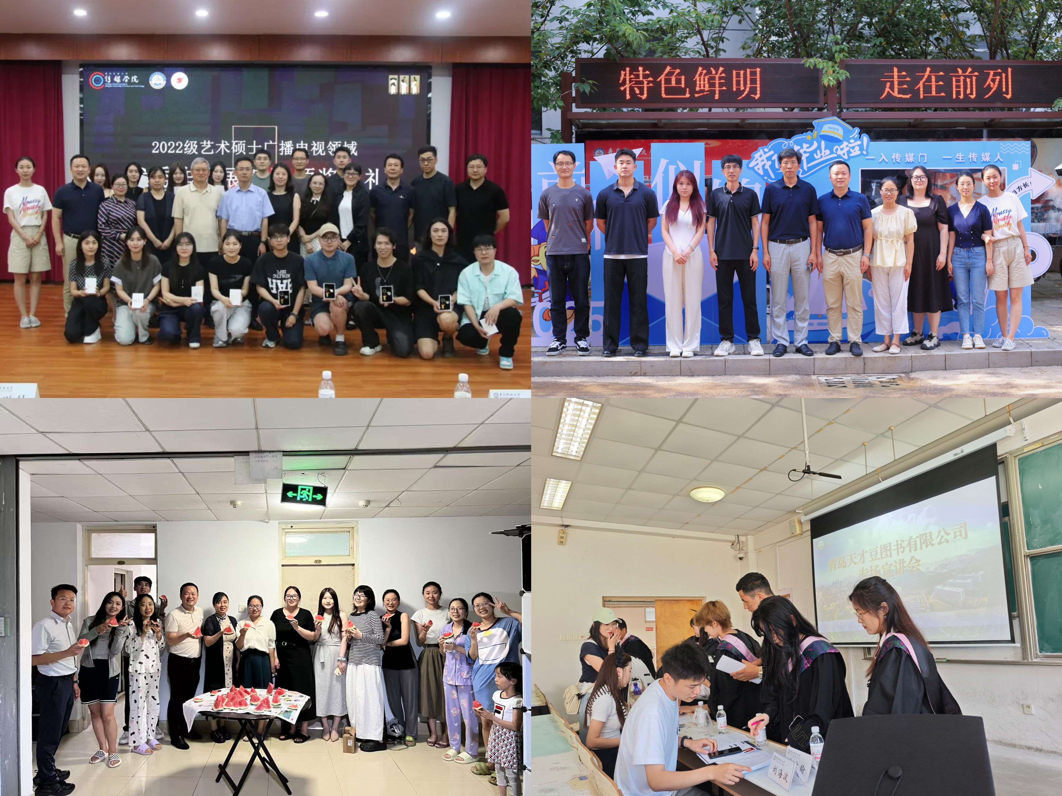 聚焦学生关切,做好离校服务。学院领导班子成员、辅导员深入毕业生宿舍,走访慰问毕业生离校计划和就业状况,送上可口的西瓜和文创纪念品,表达殷切希望和美好祝福;动画专业毕业作品展、艺术硕士(广播电视领域)优秀作品展映暨颁奖典礼相继精彩展映。组织开展“职引未来”2025届毕业生离校前专场招聘宣讲会,优化人才供需对接,促进毕业生高质量充分就业;在宿舍楼门口、学院平台等地点设置毕业离校咨询服务点、安排志愿者,帮毕业生搬运行李等,为毕业生提供全方位贴心服务。