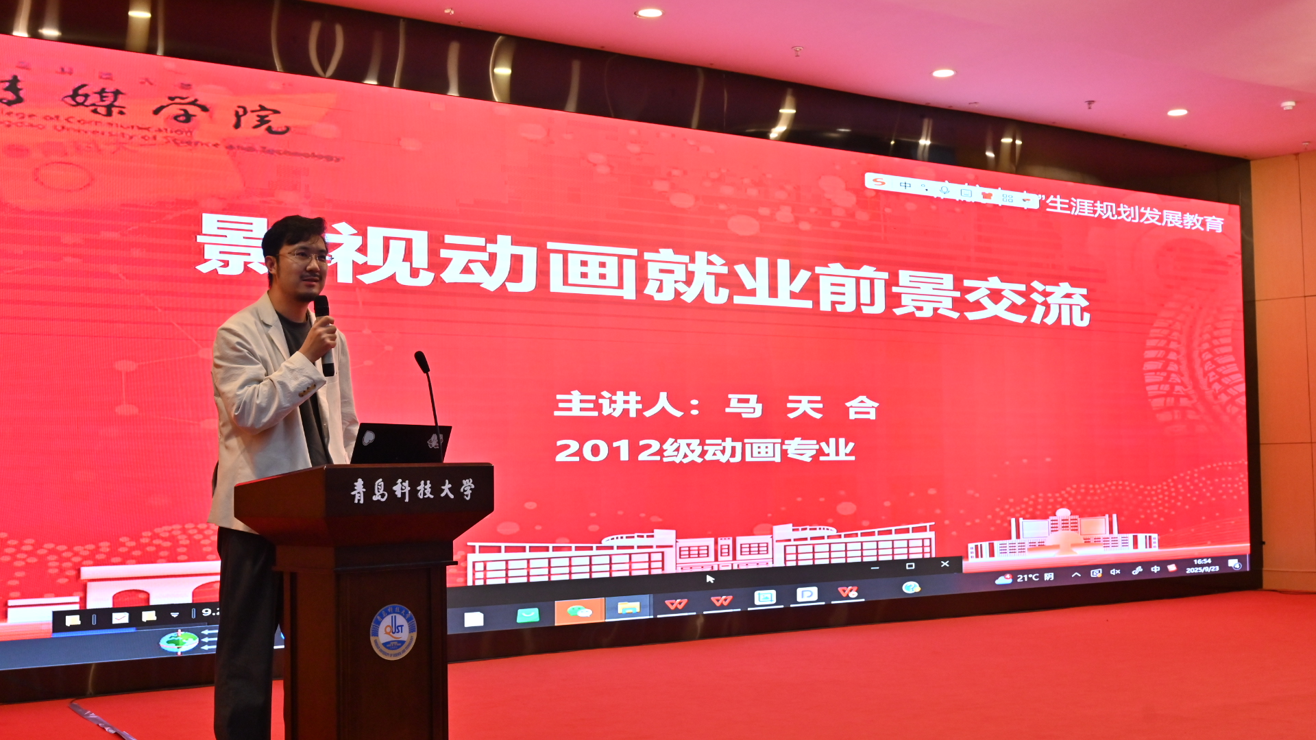 校友论坛环节,2012级广告学专业李婧君校友以“少有人走的路——做一颗红星,点亮自己,照耀边疆”为题,讲述自己的成长之路,她号召同学们将个人理想融入国家发展的宏伟蓝图,到祖国最需要的地方去建功立业。2012级动画专业马天合校友以“影视动画就业前景交流”为题,介绍了AIGC短视频制作等相关项目案例,并就当前行业发展趋势进行分析,鼓励同学们积累经验、勇敢尝试,找到适合自己的发展方向。2016级编辑出版学专业姜梦校友以“从课堂到职场:一名出版‘新生’的知行之路”为主题,聚焦“课堂知识与职场实践的衔接”,鼓励同学们在扎实学习编辑出版专业知识的基础上,更加注重实践运用。