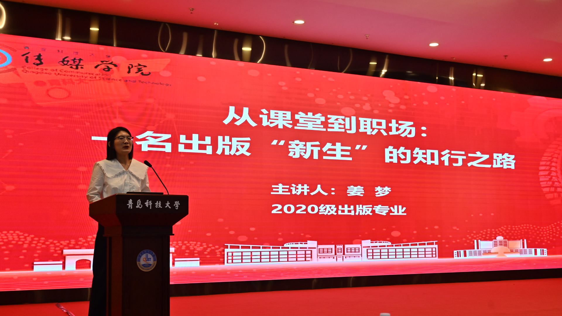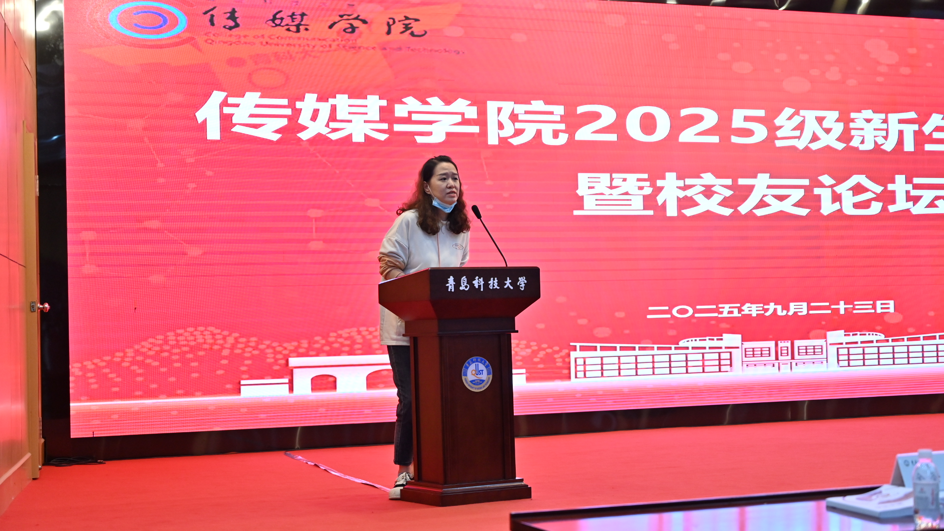 研究生教学秘书陶雪莲、本科生教学秘书马雪菲、本科生辅导员张凤,广告、编辑和动画专业三位优秀校友李婧君、马天合、姜梦,以及2025级本科生、研究生参加活动。活动由学院团委副书记兼学工办副主任金莹莹主持。