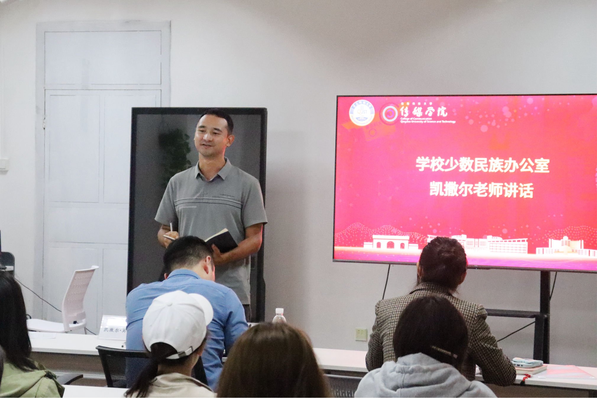 在“一站式”学生社区召开第三届“民族团结一家亲 融情交流共成长”各民族学生交流会。学院党委副书记兼副院长刘海波、学校少数民族工作办公室凯撒尔·买买提老师、学院辅导员张凤及各年级少数民族学生出席会议。会议由张凤主持。