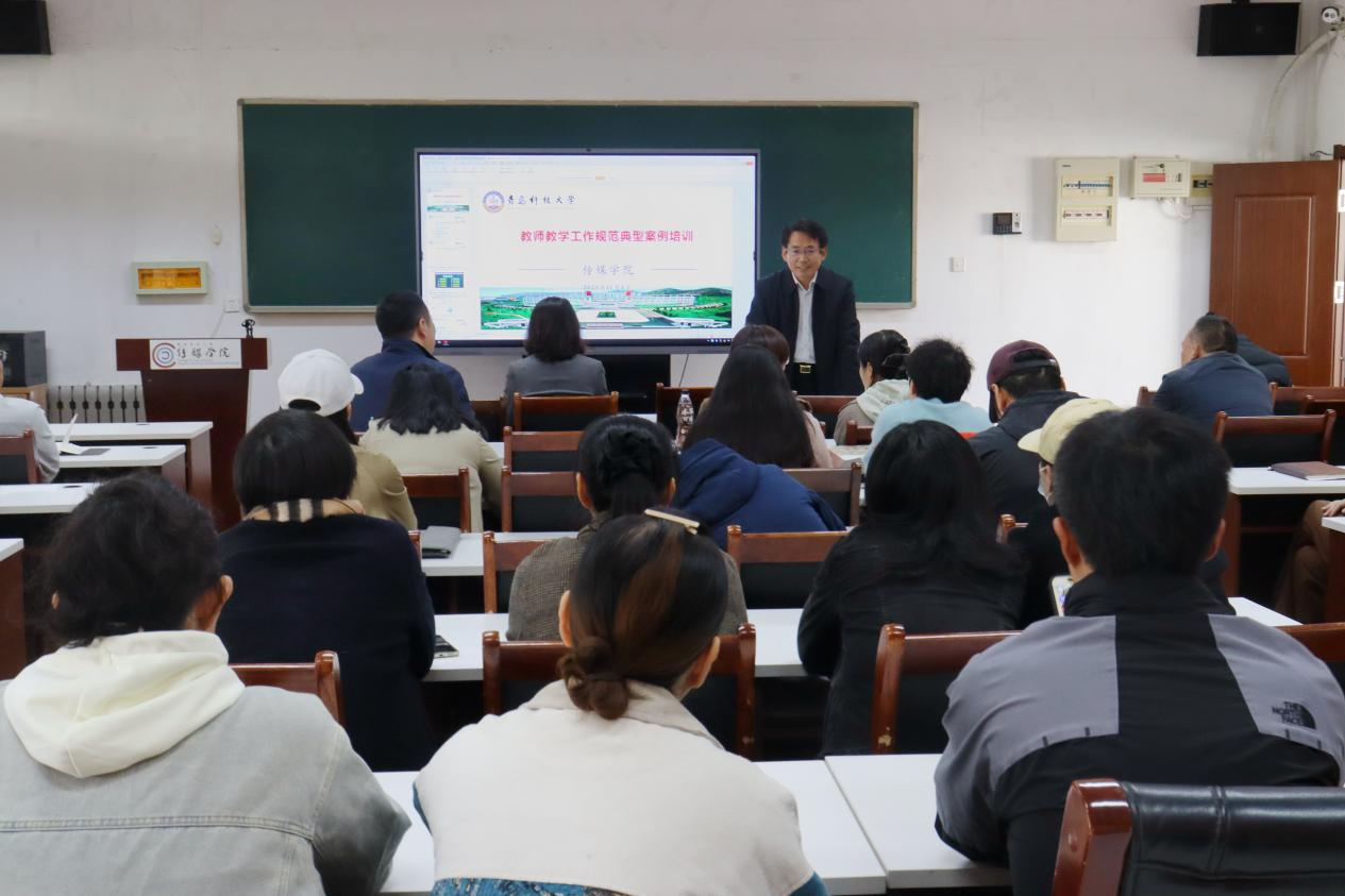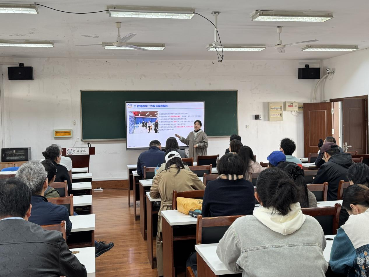 庄莹传达了学校关于教师教学工作的重点任务及部署,围绕典型教学事故案例对学校相关规章制度进行深入解析,指出教学管理规范、考试与归档管理、课堂秩序管理三个关键领域可能存在的风险点。同时,以优秀课堂教学设计案例为示范,为教师优化课堂教学提供参考,引导全院教师将学校教育教学规范内化于心、外化于行。