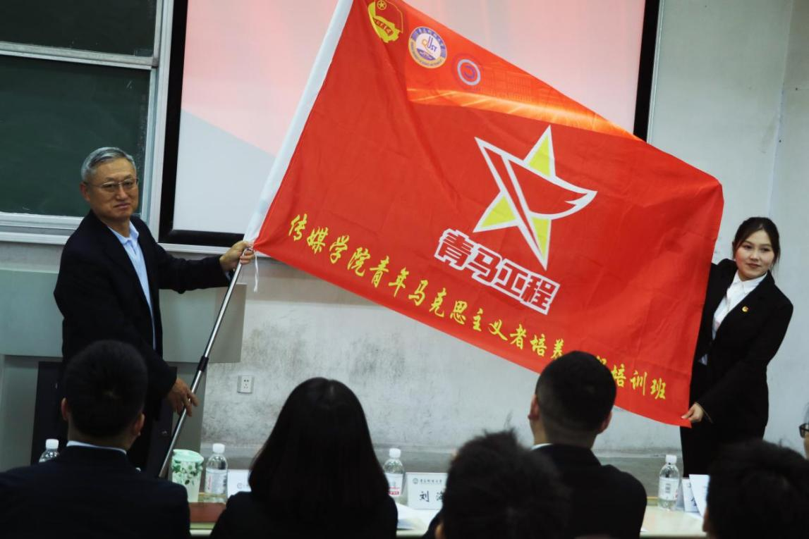 会上,钟兆秀为本期“青马工程”培训班学员代表24级戏影硕士岳馨同学授旗;金莹莹宣读了《8x8x
