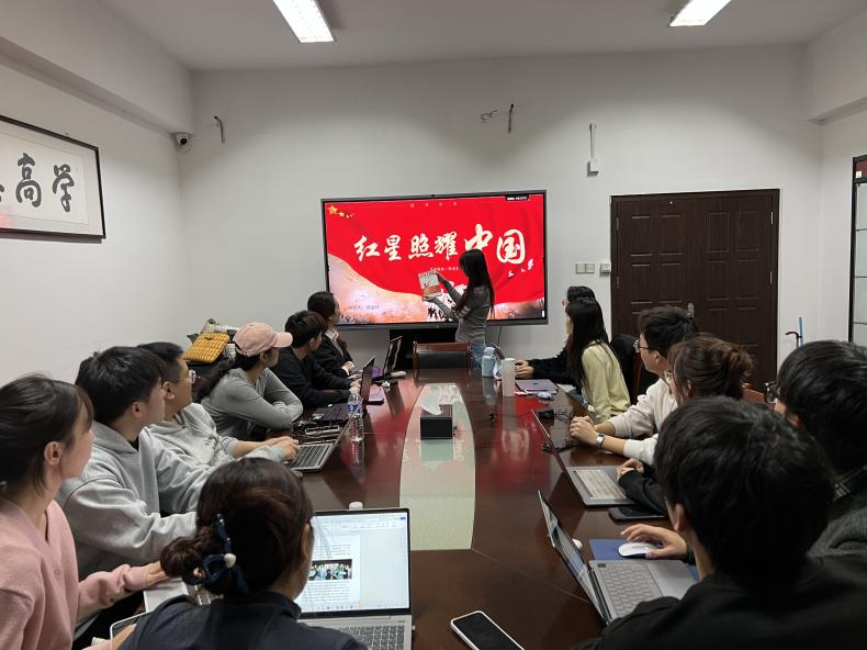 研究生会在学院315会议室举办“重温《红星照耀中国》,汲取奋进力量”主题读书会,研究生会全体成员参加。