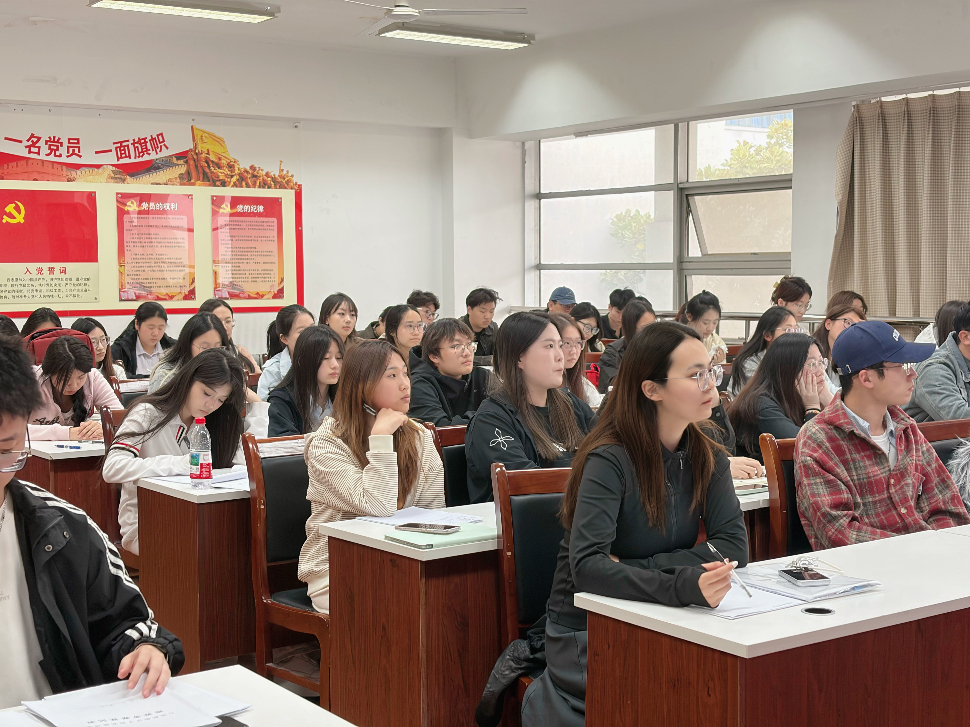 会上,刘海波结合近期学生思想动态问卷调研结果,分析了当前学生在理想信念、学习状态、纪律观念等方面的整体情况与存在问题,并围绕先锋模范作用发挥等方面对全体入党积极分子和发展对象提出三点要求:一是坚定信念铸魂,攀高修身强素养。要求同学们把坚定理想信念作为终身课题,持续深化党的创新理论学习,主动对照党员标准提升政治素养和道德修养,通过读原著、学原文、悟原理,不断筑牢信仰之基。同时注重个人全面发展,在专业学习、学科竞赛、社会实践等各方面争当排头兵,以过硬素养展现先进分子的精神风貌。二是提高政治站位,提效正风守初心。强调要时刻牢记自己的政治身份,自觉在思想上、行动上向党组织靠拢。要严守政治纪律和政治规矩,带头遵守校纪校规,在课堂纪律、宿舍管理、网络言行等日常细节中做到自律自省。要主动抵制不良风气,积极传播正能量,以清正务实的作风影响带动身边同学,永葆向党初心。三是强化责任担当,实干争先创佳绩。突出榜样示范带头作用的发挥,鼓励同学们主动亮身份、作表率,在学业帮扶、学风督查、志愿服务等具体任务中冲锋在前。要以优秀党员和身边先进典型为榜样,把责任扛在肩上,把行动落在实处,积极投身学院学风建设和文明宿舍创建等活动,以实际行动争取早日成为一名合格的共产党员。