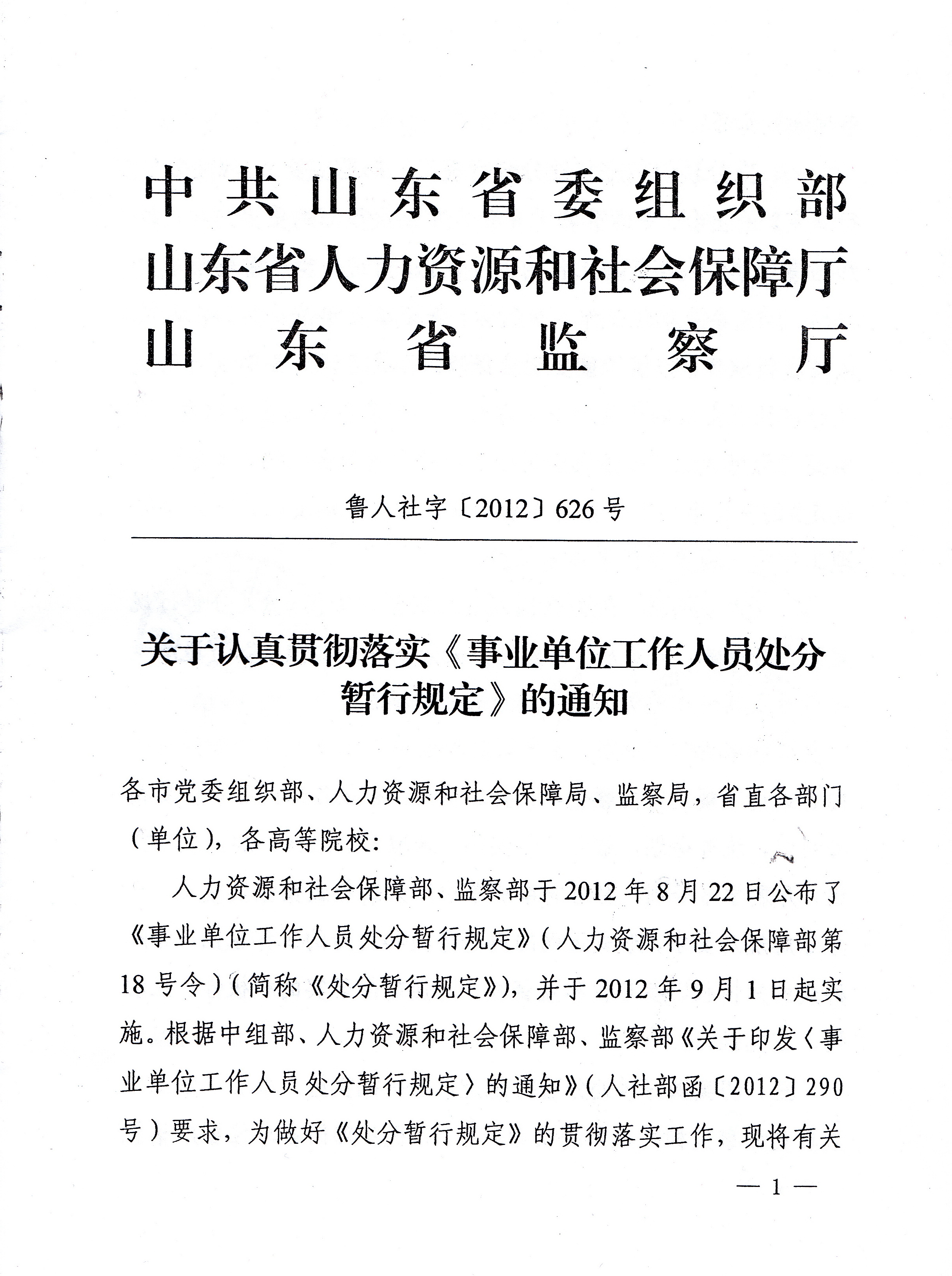 关于认真贯彻落实《事业单位工作人员处分暂行规定》的通知-8x8x