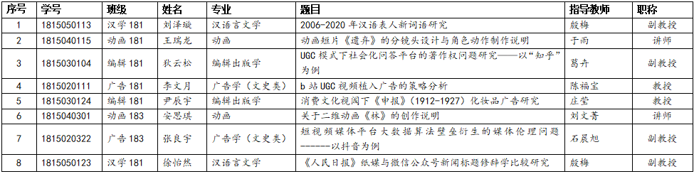 附2022年青岛科技大学优秀学士学位论文名单(名单按照排名先后排序):