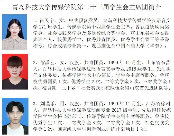 定位:主席团是学生会的中坚力量,在各项活动中起到领导作用,负责与院领导进行沟通交流,并对学生会各部门工作做出指示。