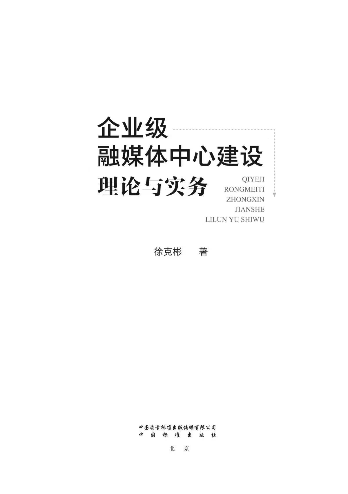 徐克彬博士新著《企业级融媒体中心建设理论与实务》由中国标准出版社出版。