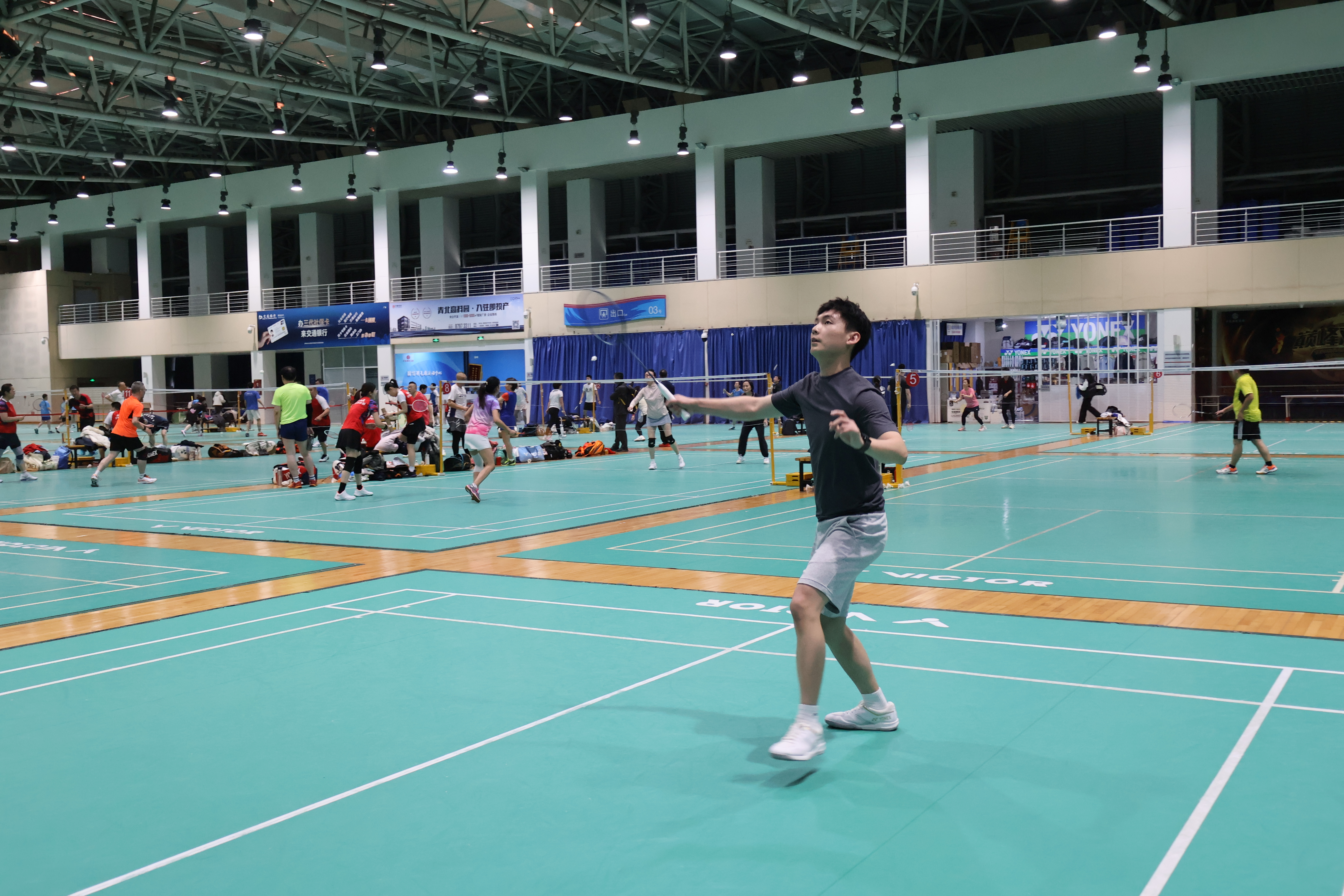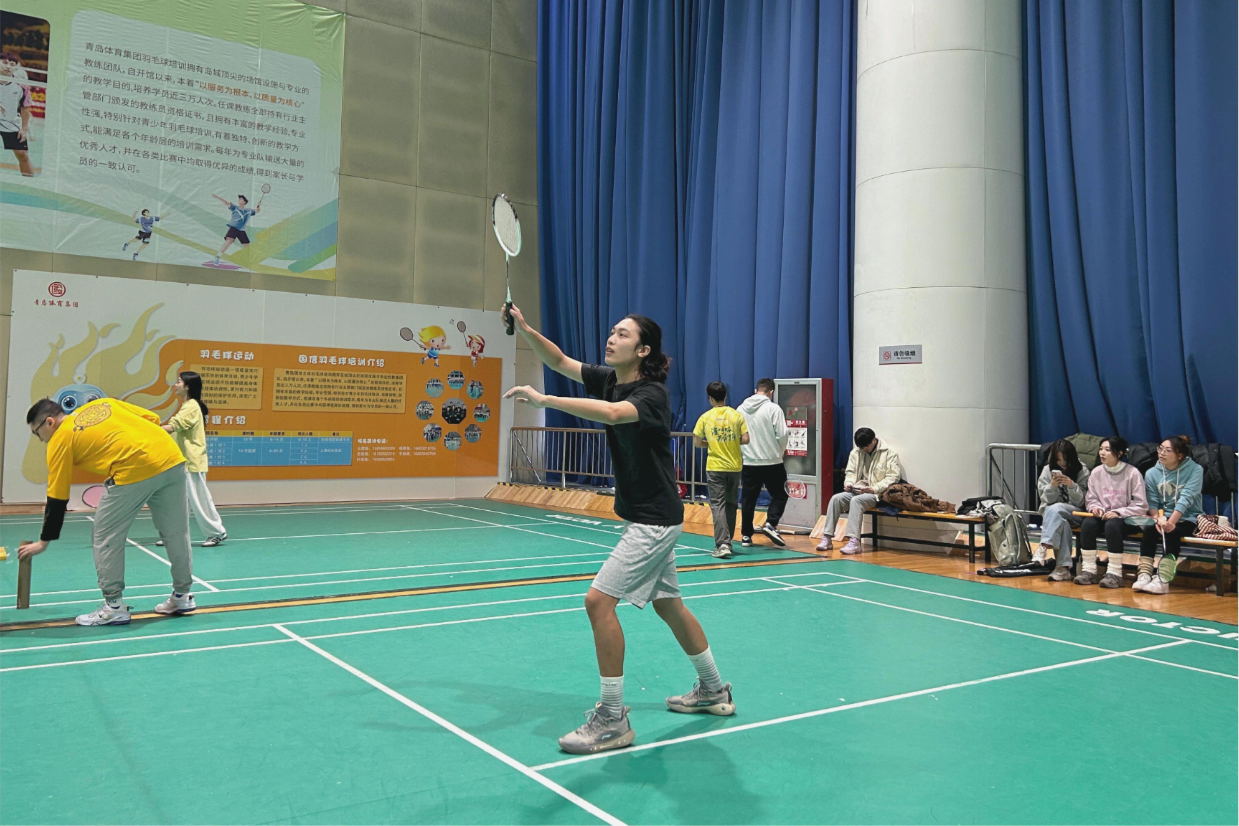 在青岛国信体育中心羽毛球馆举办“大角牛杯” 研究生羽毛球赛。本次活动共设男单、女单两个比赛项目及男女自由组合双打娱乐项目。