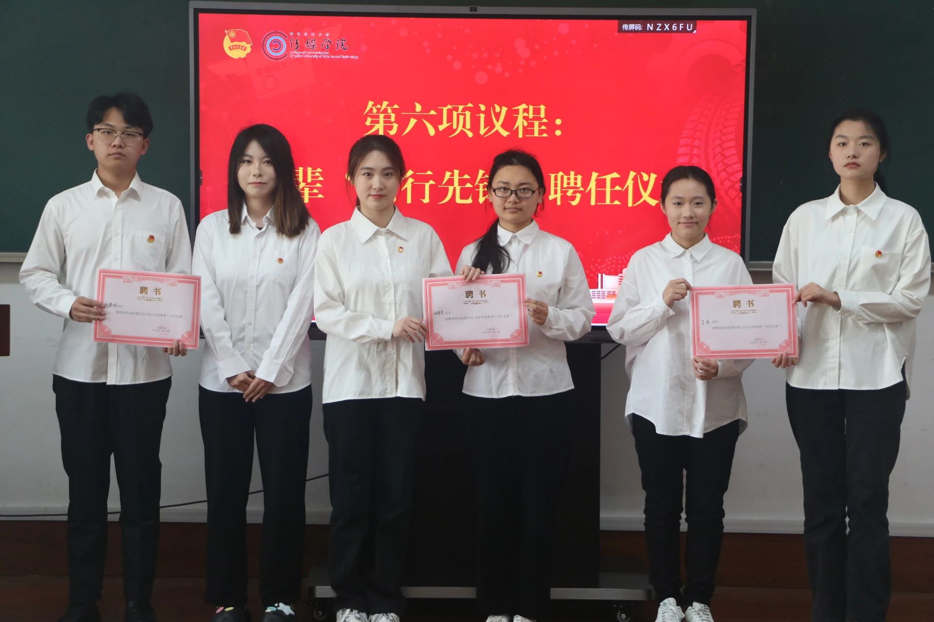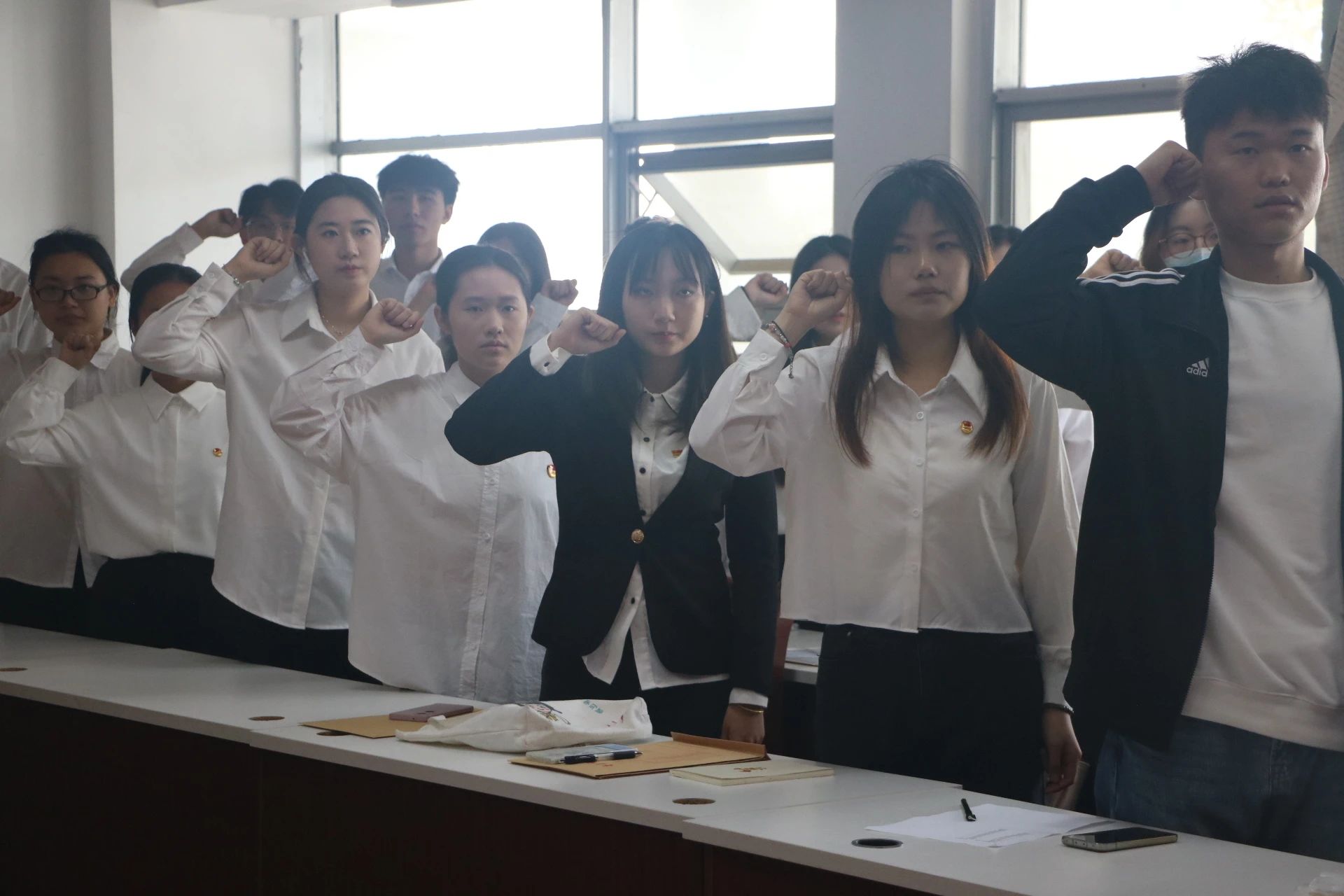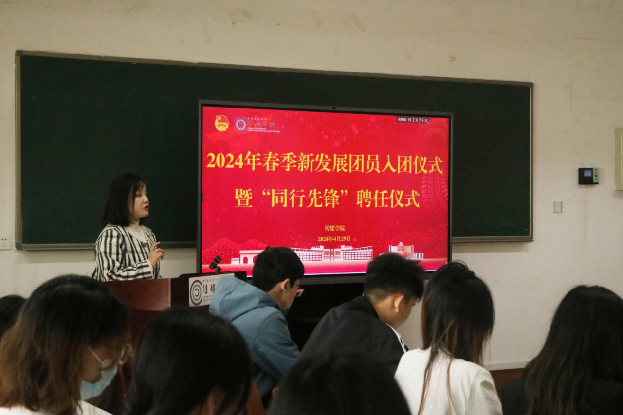 团委于310会议室举行“青春挺膺担当,共话青年成长”2024年春季新发展团员入团仪式暨“同行先锋”聘任仪式,并作“挺膺担当,强国有我”主题团课。团委教师赵岩、张鸣,18名新发展团员、18名朋辈“同行先锋”参与仪式。仪式分为“青春奋斗”“青年有为”“青春启航”三个篇章。