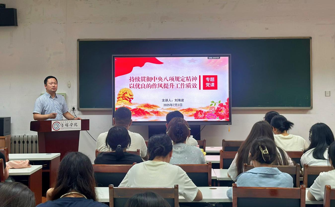 党委副书记兼副院长刘海波以“持续贯彻中央八项规定精神,以优良的作风提升工作质效”为题,在学院310会议室为学生党员、入党积极分子和入团积极分子等讲授了专题党课。党课由团委负责人金莹莹主持。