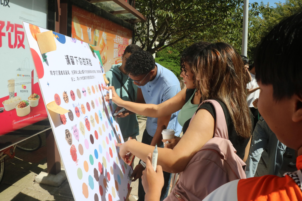 9月18日,在学院院平台开展“定格温暖,传递治愈”主题心理互动活动。同学们手持彩笔,在卡片上勾勒出各具特色的笑脸——有的灵动活泼,有的温柔治愈,整面墙的笑脸与寄语汇成一股暖流,为来往的师生带来深深的心灵慰藉。
