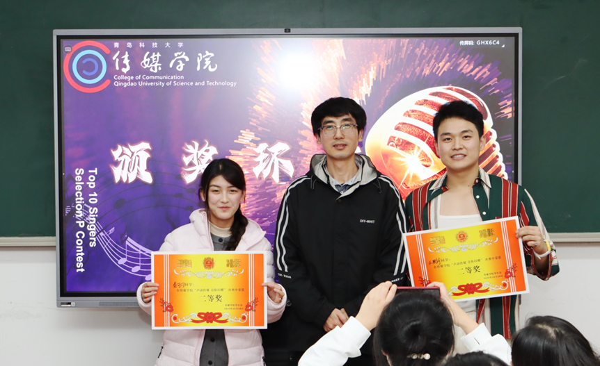 由“崂山区十大歌手”、外国语学院日语221班陈启洲,艺术学院音乐241班王世玉、王逸飞三位学生评委围绕音乐专业度、舞台表现力、创意呈现、情感表达等维度综合打分,最终评选出一等奖1名、二等奖2名、三等奖4名及优秀奖6名,老师们为获奖选手现场颁奖。本次大赛以音乐为纽带,既为校园文化注入了鲜活活力,也展现了8x8x