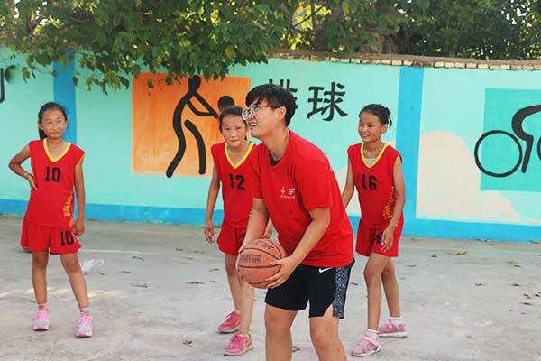 莒南县涝坡镇中心小学办学多年,业绩辉煌。2017年,涝坡镇中心小学作为足球特色学校发展势头迅猛,为进一步实现学校的和谐发展,把学校做大、做强、做优,学校的领导班子十分重视孩子们的身心健康,在教学方面注重德智体美劳全面发展。崔永峰校长表示,孩子们最需要的是心灵的呵护,而体育运动可以实现孩子们身心健康的全面发展。目前学校的活动以社团训练为主,并且积极参加县内市内的各项比赛,均取得了优异的成绩。此次青岛科技大学传播与动漫学院赴临沂的志愿活动也十分重视体育方面的培训,在临沂之行中,每天的体育训练是必不可少的,志愿者带着孩子们在阳光下打篮球、踢足球,享受体育运动的乐趣。志愿者们通过打友谊赛的方式将孩子们集中在一起,既锻炼了身体素质,又培养了孩子们的集体意识。在这些天的体育训练中,无论是志愿者还是孩子们,都获得了新知与激情。
