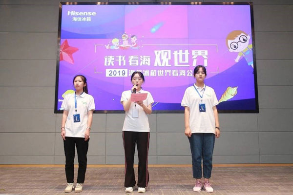 8月16日9:00,海信冰箱“读书看海观世界”公益活动启动仪式在海信崂山新研发中心举行。此次公益活动共邀请了来自湖南麻阳、云南腾冲、云南新平、山东滕州和四川陈家坝5所学校的20余名师生们参加。此次活动计划利用小朋友们的暑假时间,由志愿者们带领小朋友们亲自感受大海的气息,用实际行动帮助小朋友们增长知识、开阔眼界,激发他们对大自然的热爱,帮助他们体验科学的乐趣。