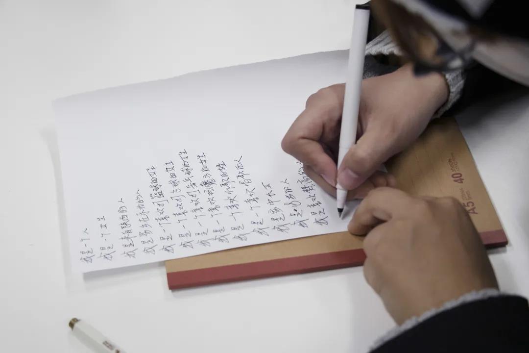 最后,一张张纸分发至同学们的手中,汪灿同学启发大家思考“我是谁”的问题。同学们认真写下对自己的看法,并以小组为单位进行交流。通过真诚的诉说与倾听,同学们更清楚认识自己的同时,也与其他同学进行了深入的交流,缩短了彼此心灵的距离。