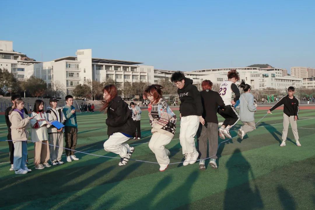 最后是跳大绳游戏,大家团结一致,通力合作,不断起跳又落地,拿出了自己的看家本领。广告专业的同学们更是跳出了46个的好成绩,毫无悬念的成为第一名。
