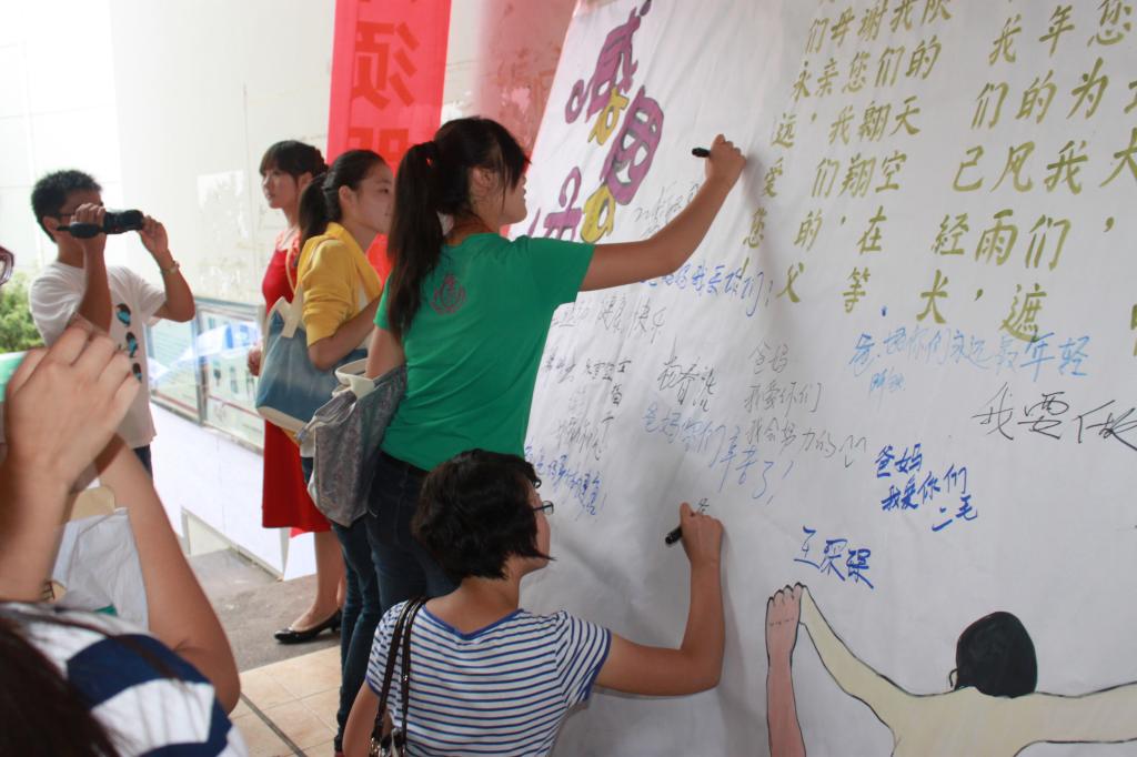 “大学生活第一天,从独立办理手续开始”,“同学:请自信自主;家长:请放心放手”,“新生独立办理报到手续,家长请止步”。在传播学院迎新现场,诸如此类的海报和提示词非常醒目,现场的志愿者也不时提醒新生家长放手让新生独立处理各种手续。学院党总支副书记魏琳说,这是学院为培养90后大学生自主自立意识而开展的,让大学新生从报到开始就独立办理各种手续,意识到从现在开始就将进入大学生活,为大学四年的生活、学习和工作走出独立第一步。新生家长对此也表示非常赞同。学院在现场也布置了感恩墙,让学生留下对父母的感谢之语,加强对学生的感恩教育。