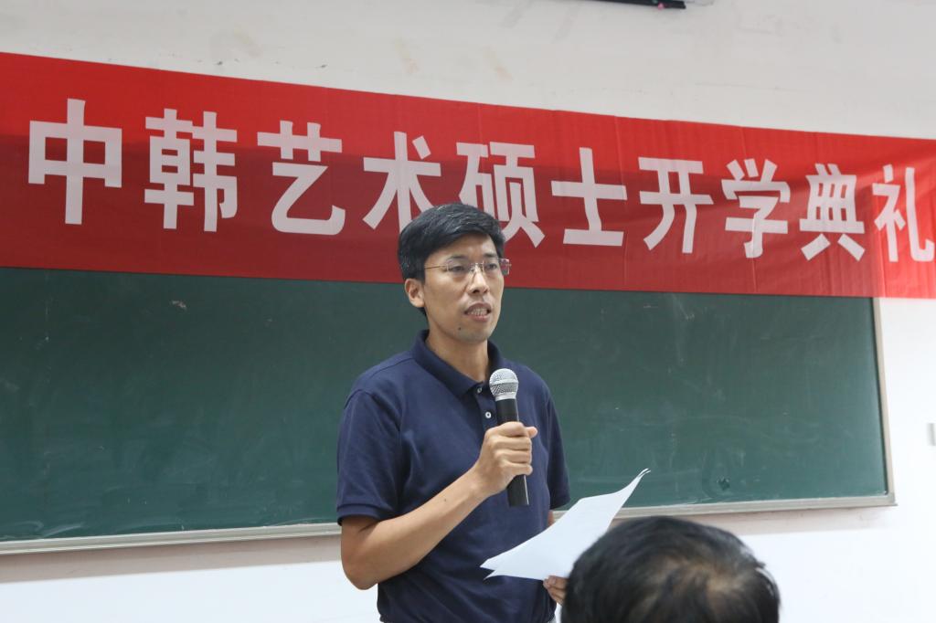 杨建华教授的讲话表达了对中韩艺术硕士项目的期望,并指出中韩艺术硕士项目有着优质的办学资源、优秀的师资队伍,希望同学们能够珍惜机会,勤奋学习,将来为中韩两国文化艺术交流做出贡献。
