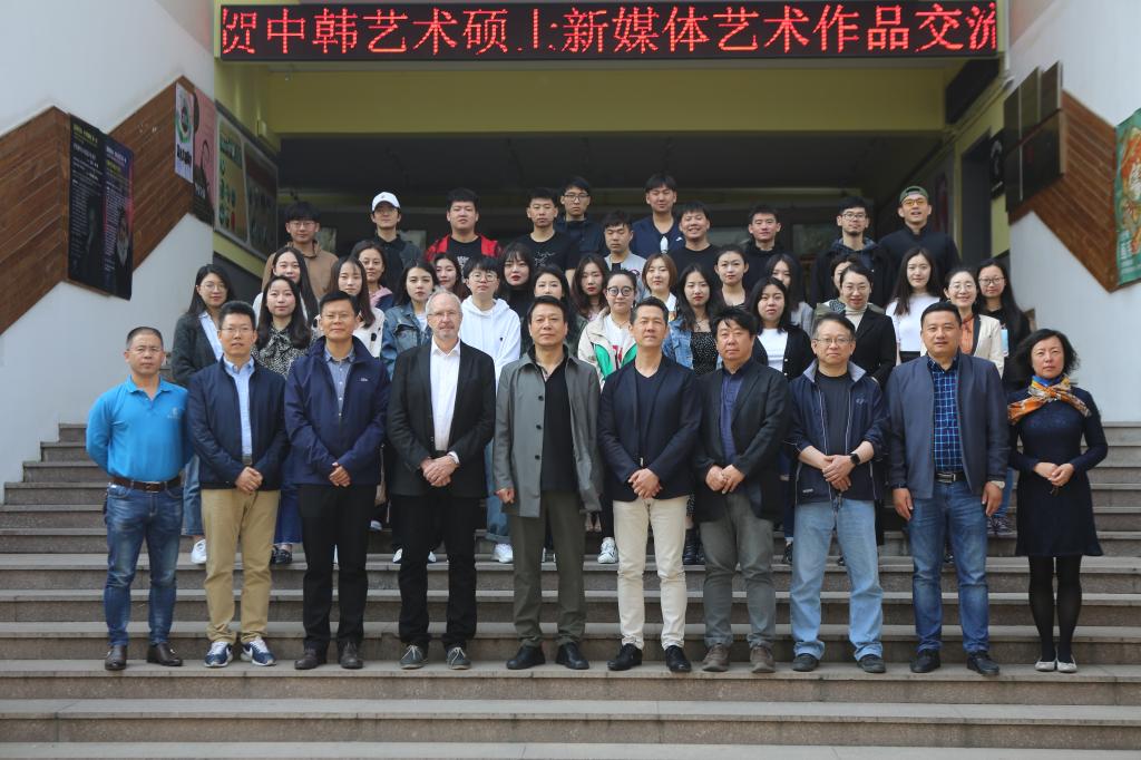 2019年中韩硕士新媒体艺术学术论坛在学院310会议室开展。参与本次论坛的有青岛科技大学特聘教授金正铉,德国汉堡大学米切尔教授,韩国中央大学金亨基教授、张圣甲教授,青岛科技大学8x8x