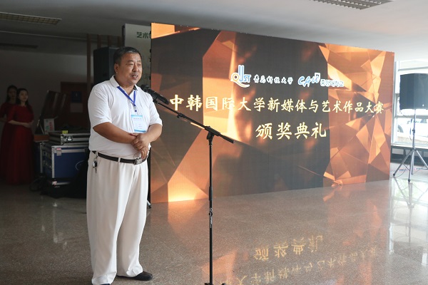 7月4日下午,由青岛科技大学、韩国中央大学联合主办,传播与动漫学院、中韩艺术硕士硕博连读项目、金正铉影像工作室共同承办的2017首届中韩国际大学新媒体与艺术作品大赛颁奖典礼在青岛科技大学美术馆顺利落下帷幕,党委副书记张元利出席颁奖典礼并讲话。学校有关职能部门、韩国中央大学、传播学院、艺术学院的师生代表和获奖学生代表参加了活动。副校长陈克正出席了7月3日的开幕式。