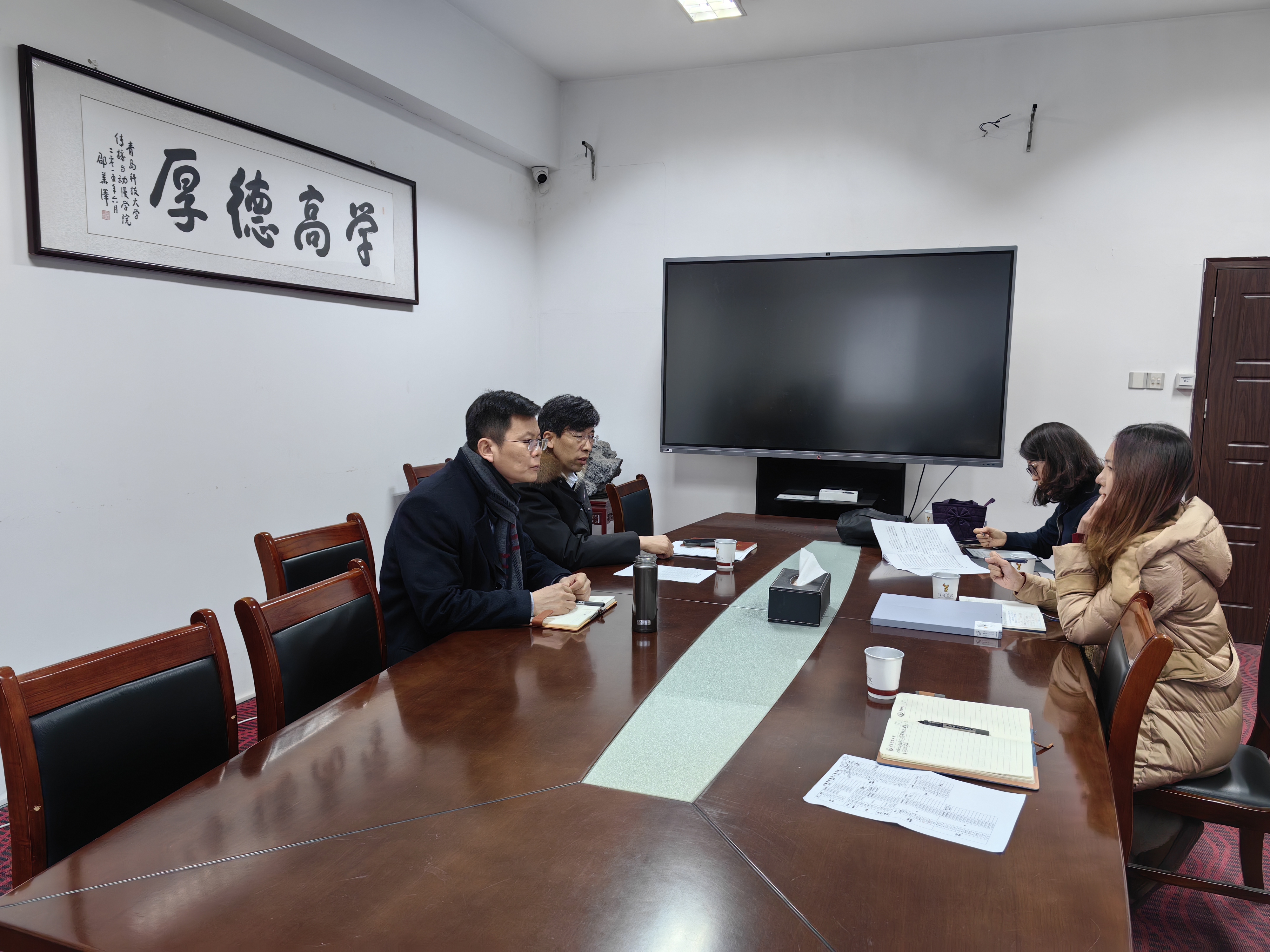 在315会议室召开中英合作动画项目评估工作推进会,学院党政领导刘志国、刘耀辉、石晨旭、刘海波,中英合作动画项目负责人单娟等参加会议。