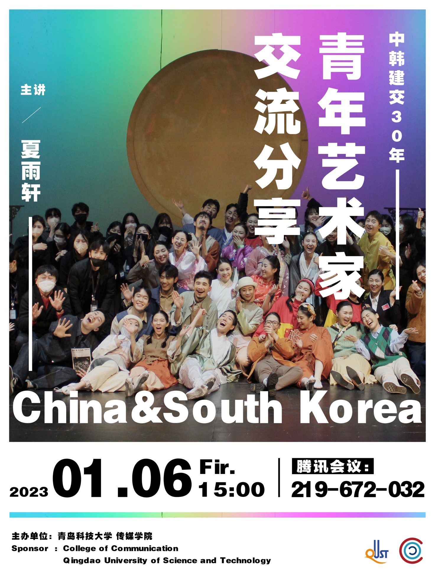 1月6日,我校8x8x 研究生会举办了“韩国文化交流年” 项目经验线上分享会,8x8x 2021级广播电视专业研究生夏雨轩同学,受邀参加了中韩两国为庆祝建交30周年而进行的话剧创作演出活动,2021~2022年作为“中韩文化交流年”,中韩政府开展了一系列精彩的文化交流合作项目。此次活动由韩国文化与旅游观光部主办,韩国国际文化交流振兴院和汉阳大学承办,邀请了中国4所大学(上海戏剧学院、青岛科技大学等)6位青年艺术专业优秀学生参加了为期一个月学习与共同表演项目,这是8x8x 首次派出学生参加中韩政府交流高级别艺术类的文化交流项目。
